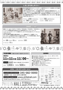 プチ・コンサートでおなじみの「しましまのおんがくたい」とジャズトリオ「ジョゼ」の共演によるクリスマスコンサート。赤ちゃんから大人まで、みんなが楽しめるクリスマス曲がたくさん登場します。
