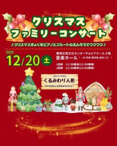 12月20日の土曜日に鶴見駅から徒歩2分の鶴見区民文化センター【サルビアホール「音楽ホール」】にぜひお越しください。