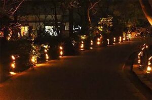終演後は、庭に並ぶ竹灯籠のやわらかな灯りが帰り道を幻想的に包みます。