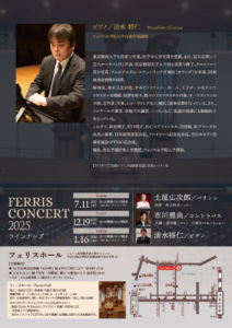 フェリス女学院大学講師・清水将仁によるピアノリサイタルをフェリスホール(横浜市中区山手町)で開催します。ベートーヴェンの《月光》《悲愴》、ショパンのノクターンやマズルカ、そしてリスト《ダンテ》まで──誰もが耳にしたことのある名曲から、クラシック好きにはたまらない大作までを集めた特別なプログラムでピアノの魅力をたっぷり味わえる夜をお過ごしください。