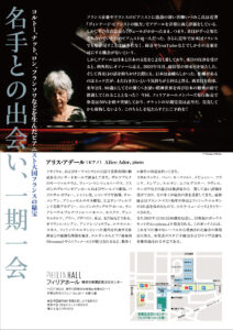 昨年、超待望の日本デビューは長年のファン歓喜&絶賛につぐ絶賛の嵐!満席になった東京2公演の熱狂的なファン多数の声も受け、すぐ「また来ていただけませんか」とパリのマネージャーに再来日の打診をした。すると「年齢もあるしOKするかどうかわからない」とマネージャーは渋った。しかし「初めての日本はあまりにも素晴らしかった。また行く」と本人が快諾し、マネージャーもびっくり&一同大歓喜!幻の天才による鍵盤音楽の傑作、まさに『一期一会』唯一無二の精神世界で満足度200%!ピアノファン絶対必聴!!