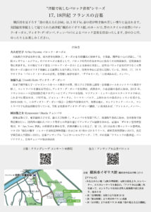横浜港を見下ろす「港が見える公園」は、3月下旬、春の花が咲き乱れ芳しい香りに包まれます。英国総領事館として建てられた西洋館「横浜市イギリス館」のホールで、昔のスタイルの楽器(バロック・オーボエ、ヴィオラ・ダ・ガンバ、チェンバロ)によるバロック音楽を演奏いたします。春のひと時、ゆったりとお楽しみください。