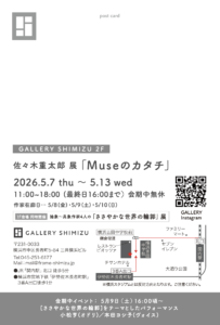 - 11:00~18:00(最終日16:00まで)会期中無休