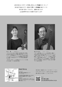 6本の弦をもつギターが登場し普及した19世紀のヨーロッパと、海を渡り独自のギター音楽が花開いた20世紀の南アメリカ。   時を経て変わったものと、連綿と続くもの。井上景(19世紀ギター)と、高木裕治(モダンギター)の二人の奏者でお送りします。